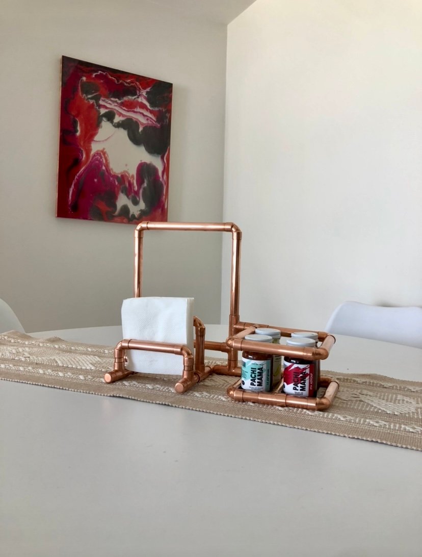 Práctico Organizador para mesa Mod. Table Organizer, fabricada en cobre de primera calidad, con un diseño vintage y elegante.